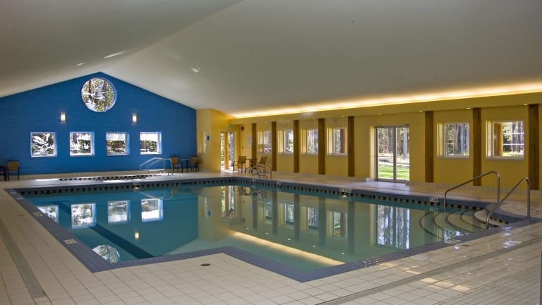 Das Resort bietet sowohl Innen- als auch Aussenpools, die ideal für Aquatraining und aktive Erholung sind. Für sportbegeisterte Gäste werden Aktivitäten wie Velofahren/Mountainbiking, Tennis, Angeln und Kanufahren angeboten. Skifahrer finden in der Umgebung passende Freizeitmöglichkeiten, und Skipässe sind vor Ort erhältlich. Zudem stehen ein Fitnessraum und verschiedene Indoor-Sportarten wie Tischtennis, Badminton, Billard und Darts zur Verfügung. Der Wellnessbereich umfasst eine Sauna, einen Whirlpool und ein Dampfbad, während ein Nachtclub für zusätzliche Unterhaltung sorgt. Eine Eislaufbahn sowie Grillmöglichkeiten ergänzen das Freizeitangebot.
