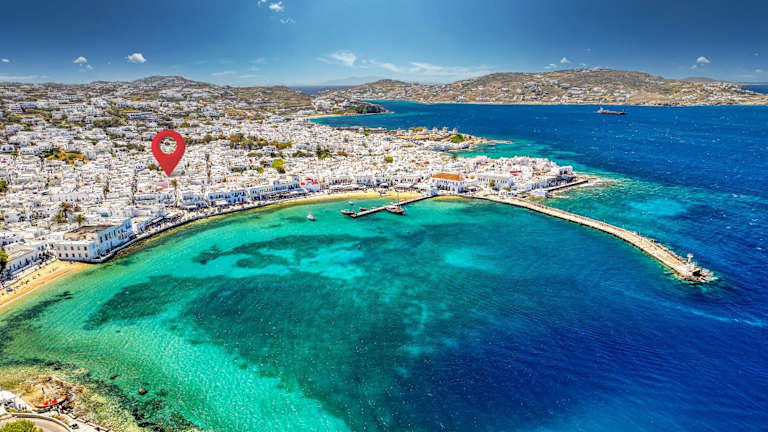 Das Hotel Manto befindet sich im Herzen von Mykonos-Stadt, nur einen kurzen Spaziergang von einer Bushaltestelle entfernt, die Verbindungen zu den berühmten Stränden der Insel bietet. Die Lage ermöglicht den Gästen einfachen Zugang zu vielen Sehenswürdigkeiten.