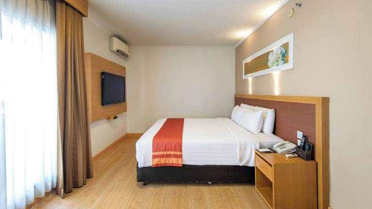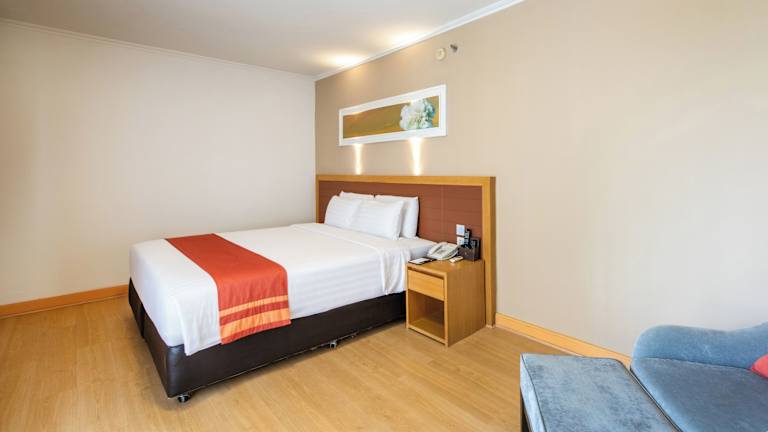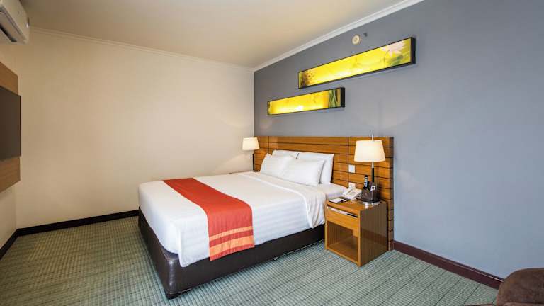 Die klimatisierten Zimmer bieten ein modernes Ambiente mit Stadtblick, einem Balkon oder einer Terrasse. Sie sind ausgestattet mit einem Doppelbett oder Kingsize-Bett, einem Safe, einer Minibar, einem Kühlschrank, einer Tee-/Kaffeemaschine sowie einem TV-Gerät mit Satellitenempfang. Im Badezimmer finden die Gäste eine Badewanne, einen Haartrockner und kostenfreie Pflegeprodukte. Hausschuhe sowie eine Auswahl an Handtüchern sind ebenfalls vorhanden.