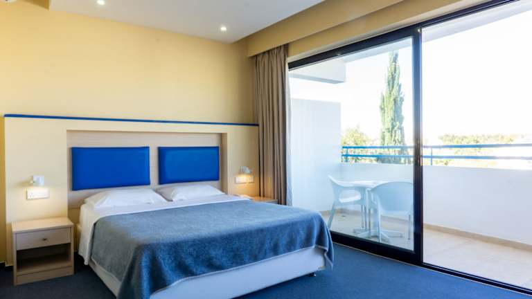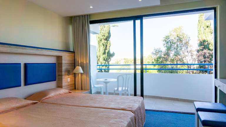 Die geräumigen und klimatisierten Zimmer sind mit Teppichböden ausgestattet und bieten einen Balkon mit Blick auf das Mittelmeer. Zur Ausstattung gehören Sat-TV, ein Safe sowie ein Sitzbereich. In den eigenen Bädern stehen eine Dusche und Pflegeprodukte bereit. Auf Anfrage erhalten Gäste einen Haartrockner.