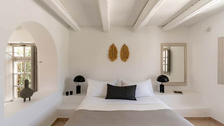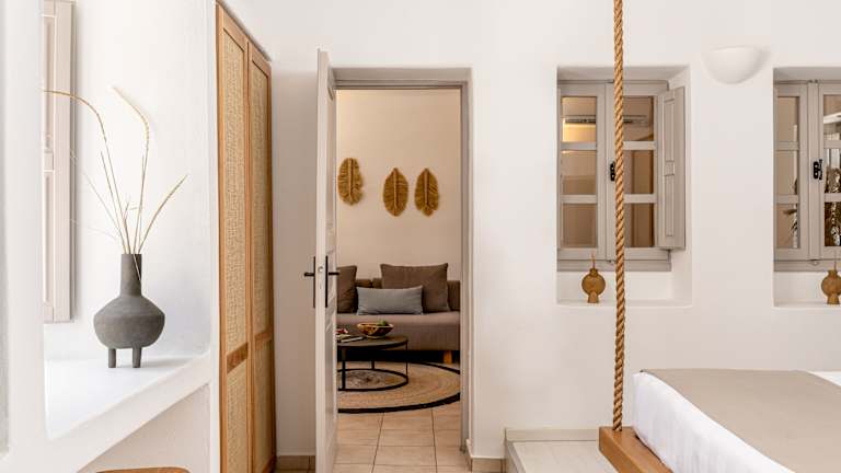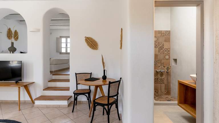 Hübsche, gepflegte Anlage im Kykladenstil mit liebevoll eingerichteten Studios und Maisonetten. Ein schöner Garten mit Palmen und Bougainvillas sorgt für eine einladende Atmosphäre.