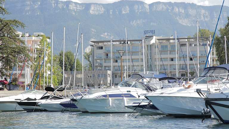 Das Hotel Marina d'Adelphia befindet sich am Ufer des Lac du Bourget, nur 100 m vom Stadtzentrum von Aix-les-Bains entfernt. Die Umgebung begeistert mit einer fantastischen Landschaft aus Bergen und dem See. Kultur- und Freizeitangebote wie das Museum Faure und das Theatre de Verdure sind in der Nähe zu finden, ca. 4 km entfernt. Der nächste Bahnhof liegt ca. 3 km entfernt und die Distanz zum Flughafen beträgt ca. 8,5 km. Für weitere Erkundungen sind die Skipisten etwa 21,8 km und der Golfplatz ca. 4 km entfernt.