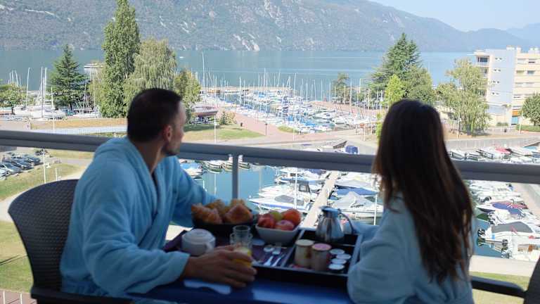 Das kulinarische Angebot umfasst ein Frühstücksbuffet, welches täglich im Restaurant serviert wird, sowie Optionen für mittags und abends mit traditioneller Küche. Gäste können wählen zwischen Buffet, à la carte und Menü. Wünsche nach Diätgerichten oder Kindermenüs werden ebenfalls berücksichtigt. Gerne wird das Frühstück auf Wunsch auf das Zimmer geliefert. Das Restaurant bietet zudem eine herrliche Aussicht auf den Lac du Bourget.