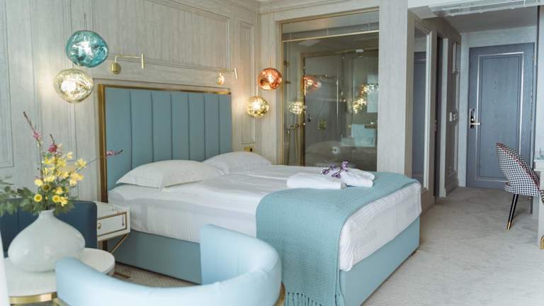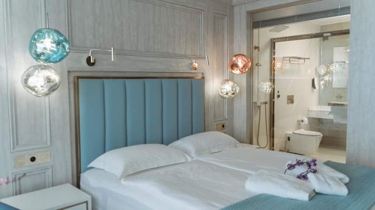 Die Zimmer sind mit einer Klimaanlage, einem Schreibtisch, einem Flachbild-TV, einem eigenen Badezimmer, Bettwäsche, Handtüchern und einer Terrasse mit Meerblick ausgestattet. Jedes Gästezimmer bietet zusätzlich einen Kühlschrank.