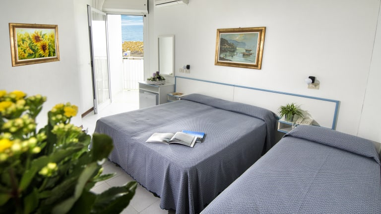 Die Zimmer sind klimatisiert und beheizbar und in den meisten gibt es Balkone oder Terrassen mit Meerblick. Zur Ausstattung der Zimmer gehören ein Queensizebett, ein Sofabett, ein Safe, ein Schreibtisch und ein Kühlschrank. Ein Flachbildfernseher, ein Telefon und kostenloses WLAN sind ebenfalls vorhanden. Die Badezimmer sind mit einer Dusche, Bademänteln, einem Haartrockner und Kosmetikartikeln ausgestattet. Familien- und Nichtraucherzimmer sind verfügbar.