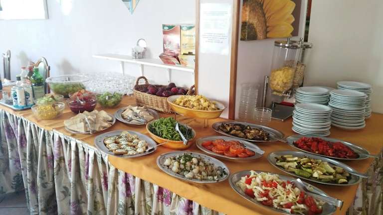 Jeden Morgen erwartet Sie ein reichhaltiges Frühstücksbuffet im Hotel Marittimo. Hier können Sie sich mit süßen und herzhaften Speisen für den Tag stärken. Die Bar lädt zum Verweilen ein und das hoteleigene Restaurant serviert Ihnen typische Gerichte aus der Region. Genießen Sie die kulinarischen Köstlichkeiten und lassen Sie sich von der Gastfreundschaft verwöhnen.