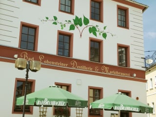 Unser Hotel steht am Marktplatz von Bad Lobenstein, in verkehrsberuhigter Lage. Hier laden die umstehenden Sitzgelegenheiten zum verweilen ein. Sie haben Blick auf den Bad Lobensteiner "Hundebrunnen" und auf den "Lommesteener Fäßleseecher", der im gegenüberliegenden Rathaus zuhause ist. Von unserem Marktplatz aus erreichen Sie in nur wenigen Minuten verschiedene Restaurants, Einkaufsmöglichkeiten, Banken und eine Apotheke. Nicht weit entfernt lädt unser Stadtpark zum kleinen Spaziergang oder für die Kleinen auf dem gepflegtem Spielplatz zum Austoben ein.