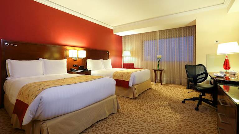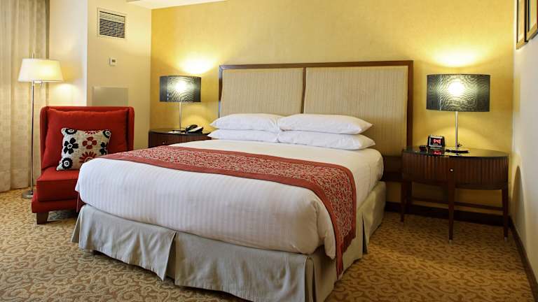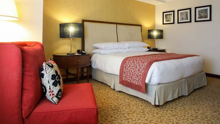 Die Zimmer sind grosszügig gestaltet und bieten modernen Komfort. Jedes Zimmer verfügt über eine Klimaanlage, ein Doppelbett oder Kingsize-Bett, ein Badezimmer mit Dusche und Badewanne sowie eine Minibar. Zur Ausstattung gehören auch ein Safe, ein Kühlschrank, eine Tee-/Kaffeemaschine und ein Flachbild-TV. Einige Zimmer bieten zusätzlich einen Balkon oder eine Terrasse mit Stadtblick.