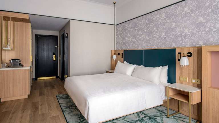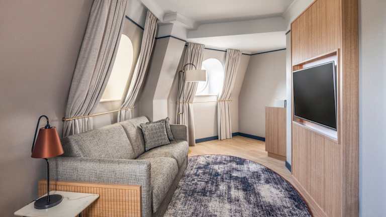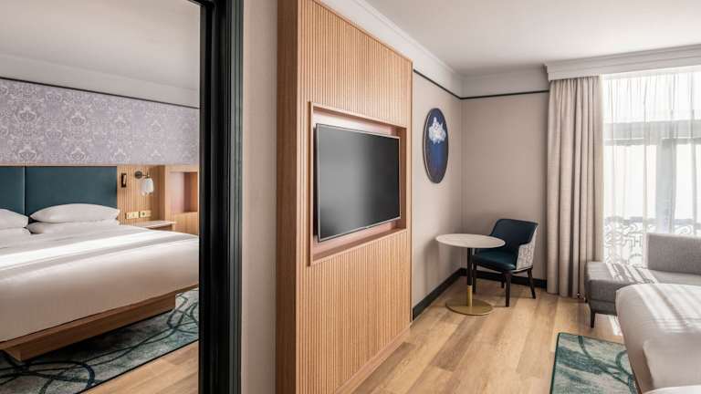 Die Zimmer verfügen über eine Klimaanlage, ein Kingsizebett, ein Sofabett sowie eine Minibar und einen Schreibtisch. Ein Minikühlschrank, eine Mikrowelle und eine Tee-/Kaffeemaschine sind ebenfalls vorhanden. Die Badezimmer sind mit einer Dusche und einer Badewanne ausgestattet. Das Hotel bietet auch Familienzimmer sowie rollstuhlgerechte Zimmer mit barrierefreien Badezimmern.