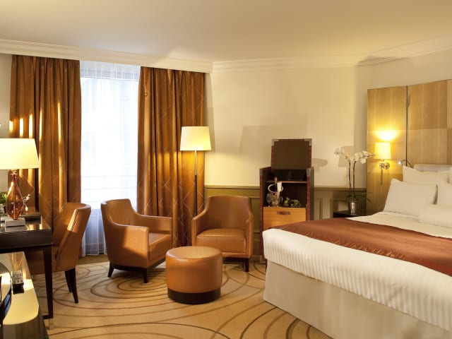 Die klimatisierten Zimmer sind im modernen Stil eingerichtet und verfügen über einen LCD-Sat-TV, eine Minibar sowie ein eigenes Bad mit Badewanne und Bademänteln. Einige Zimmer und Suiten bieten einen Blick auf die Champs-Élysées. Allergikerfreundliche Zimmer sind ebenfalls verfügbar.
