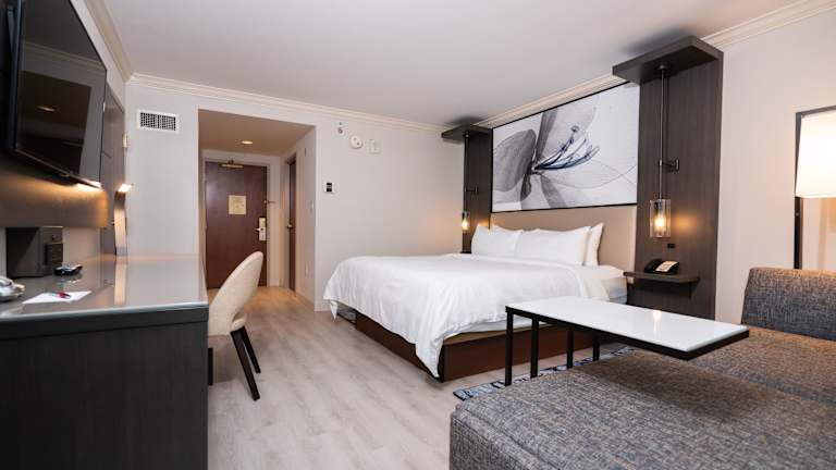 Die Zimmer bieten ein angenehmes Raumklima dank Klimaanlage und individueller Heizungssteuerung. Die Ausstattung umfasst ein Kingsizebett, ein Sofabett, Safe, Schreibtisch, Minikühlschrank, Tee- und Kaffeezubereiter sowie ein Bügelset. Teilweise haben die Gäste Zugang zu Balkon oder Terrasse mit Blick auf den Hafen oder die Berge. Jedes Zimmer verfügt über ein Badezimmer mit Dusche und Badewanne, Föhn und Kosmetikartikeln. Zustellbetten sowie rollstuhlgerechte Zimmer stehen auf Anfrage zur Verfügung.