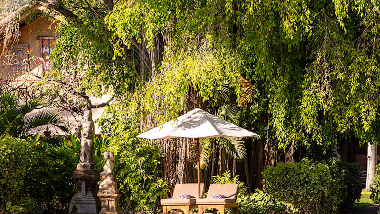 Der perfekte Ort für Connaisseure des Luxus und der Erholung - eine versteckte aber exklusive Destination, perfekt für exotische Hochzeiten, romantische Honeymoons und glückliche Familienferien. Genießen Sie die üppige und farbenfrohe Vegetation unserer vier Hektar großen Gartenanlage, mit Palmen, Melatibäumen, Bougainvillea, Hibiskus, rotem Jasmin, Oleander und vielen mehr, die ein perfektes Habitat für zahlreiche tropische Vögel bieten. Mit 23 x 12 Metern Größe ist unser Pool perfekt zum Schwimmen und Erfrischen und mit einer Tiefe von drei Metern im hinteren Teil können auch unsere Tauchschüler ihre ersten Erfahrungen unter Wasser sammeln. Das Spa Programm mit den speziell nach traditionellen, balinesischen Ritualen entwickelten 2 Hand, 4 Hand und 6 Hand Massagen, spiegelt die Philosophie der Einigkeit durch ewige Dualität wider und wirken gleichzeitig erholsam und verjüngend.