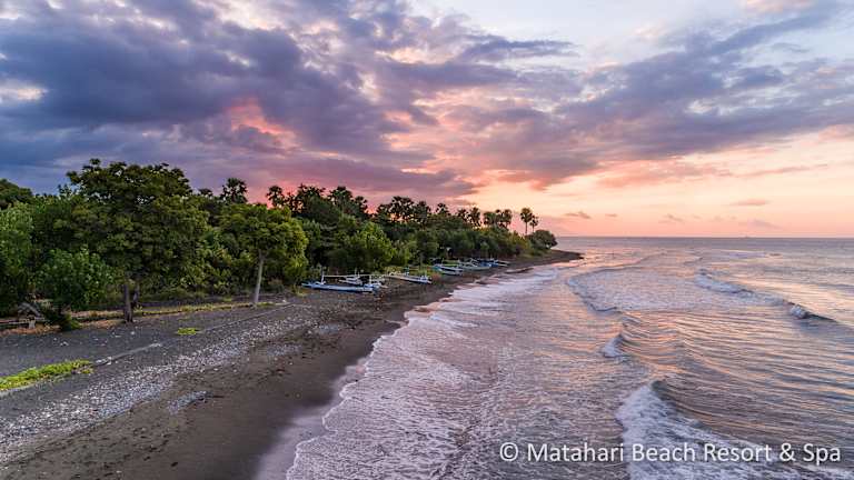 Im ursprünglichen Nordwesten Balis, liegt das Matahari Beach Resort & Spa zwischen dem Bali Barat Nationalpark und der ruhigen Java See. Die Insel Menjangan ist in 50 Minuten mit dem Boot zu erreichen und gilt als einer der schönsten Tauchplätze der Welt. Die bunte und vielfältige Unterwasserwelt garantiert ein unvergessliches Erlebnis für Taucher und Schnorchler. Der Pulaki Tempel, einer der gröβten Hindu Tempel Balis, ist nur 1 km entfernt. Gleich in der Nähe befindet sich der Melanting Tempel, der mit seinen prächtigen Drachen Statuen, besonders majestätisch erscheint. Der Batu Kursi Tempel / Hill, der zu Fuβ in 30 Minuten zu erreichen ist, bietet eine wunderschöne Aussicht auf das Meer und auf die beeindruckende Landschaft des Nordwesten von Bali. Einer der bekanntesten Weine Balis ist der sogenannte „Hatten Wine“, der seit mehr als 20 Jahren im Nordwesten von Bali produziert wird. Die meisten Weinberge befinden sich entlang der Nordküste, zwischen Seririt und Pemuteran. Nach einer 20 minütigen Fahrt vom Matahari Resort, gelangt man zum „Hatten Wine Visitor Center“, wo man die unterschiedlichsten Weinsorten verkosten kann. Die etwa 10 km weit entfernte „Atlas South Sea Pearl Farm“ ist eine von fünf Atlas Farmen in Indonesien, die seit 20 Jahren silberne und weiβe Südseeperlen produzieren und zu den weltweit führenden Unternehmen im Bereich Öko-Perlen gehören.