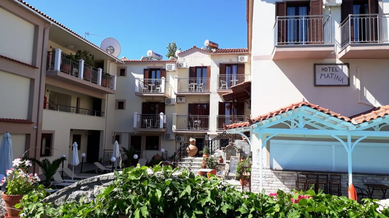Das Hotel Matina ist ein kleines, familiär geführtes Hotel mit insgesamt 25 Zimmern und zwei Etagen. Es bietet eine heimelige Atmosphäre und einen saisonalen Aussenpool. Der Zutritt zu den öffentlichen Bereichen, einschliesslich der Sonnenterrasse, ist für Gäste kostenfrei. Es stehen verschiedene Zahlungsarten wie VISA und MasterCard zur Verfügung, und das Hotelpersonal ist 24 Stunden am Tag in deutscher Sprache erreichbar.