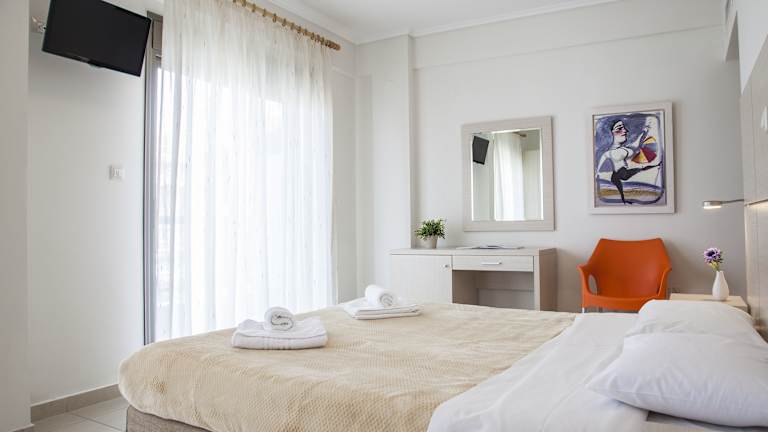Das Hotel Mavridis bietet komfortable Zimmer in verschiedenen Größen. Alle Zimmer sind klimatisiert und verfügen über einen Balkon, ein eigenes Badezimmer mit Dusche, einen Farb-TV und eine Minibar. Einige Zimmer bieten zudem einen herrlichen Meerblick.