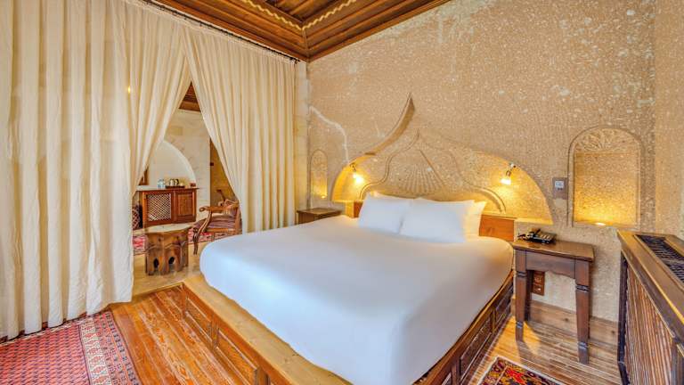 Genießen Sie einen luxuriösen Aufenthalt im MDC Cave Hotel in Ürgüp. Dieses einzigartige Höhlenhotel bietet Ihnen geräumige Zimmer mit modernen Annehmlichkeiten und einen atemberaubenden Panoramablick auf das Tal. Das Hotelrestaurant verwöhnt Sie mit regionaler Küche und im grünen Garten können Sie bei einem Glas Wein entspannen. Nutzen Sie die verschiedenen Freizeitangebote der Umgebung, wie Heißluftballonfahrten und Wanderungen durch die Täler Kappadokiens.