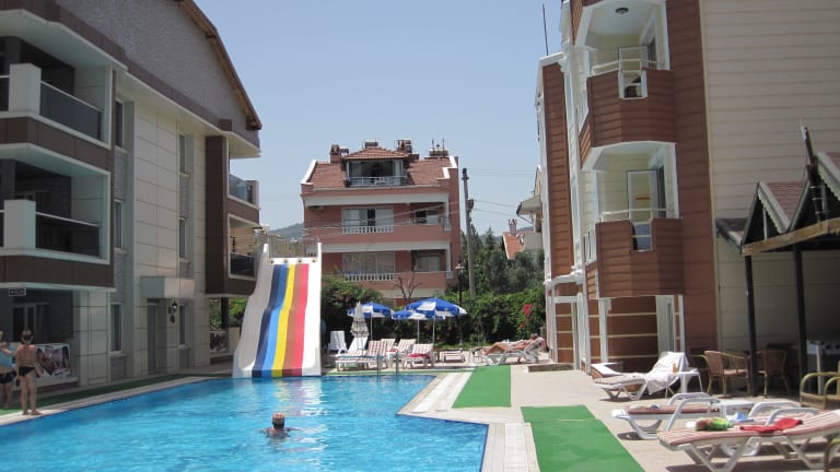 Das Mehtap Family Hotel liegt etwa 100 m oberhalb der Hauptstraße und nur ca. 170 m vom Strand entfernt. In der Nähe befindet sich das Einkaufszentrum Karacan, in dem Sie verschiedene Einkaufsmöglichkeiten finden. Auch Restaurants, Bars, Pubs und Ausgehmöglichkeiten sind in der Umgebung vorhanden. Der Flughafen Dalaman ist etwa 90 km entfernt.