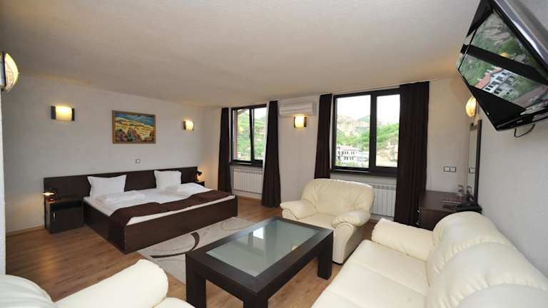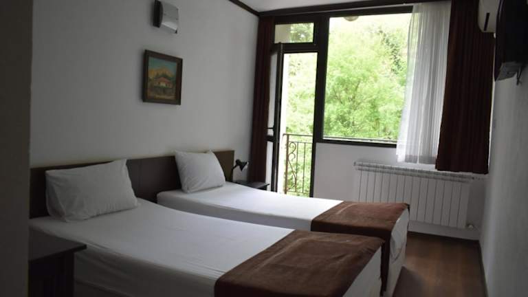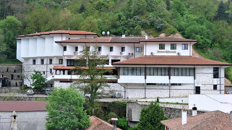 Das Hotel Melnik liegt an einem Berghang, nur 300 m vom Zentrum von Melnik entfernt. In der Nähe befinden sich beliebte Attraktionen wie die Festung von Despot Slav (ca. 1 km) und das Rhozen-Kloster (7 km entfernt). Der Busbahnhof von Melnik sowie verschiedene historische Gebäude und Museen sind in 5 Gehminuten erreichbar.