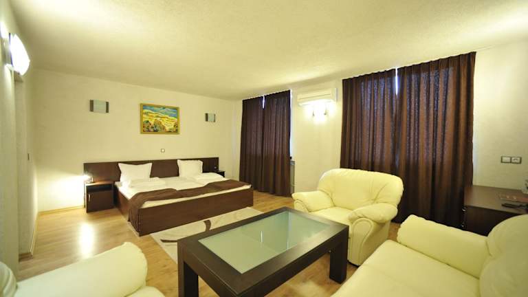 Das Frühstück ist im Zimmerpreis inbegriffen. Das A-la-carte-Restaurant bietet eine Auswahl an bulgarischen und internationalen Spezialitäten. Zudem gibt es in der stilvollen Lobbybar Snacks und Getränke. Eine Terrasse im Freien sowie eine traditionelle Taverne mit Weinkarte laden zum Entspannen ein. Im angelegten Garten steht ein Grillplatz kostenfrei zur Verfügung.