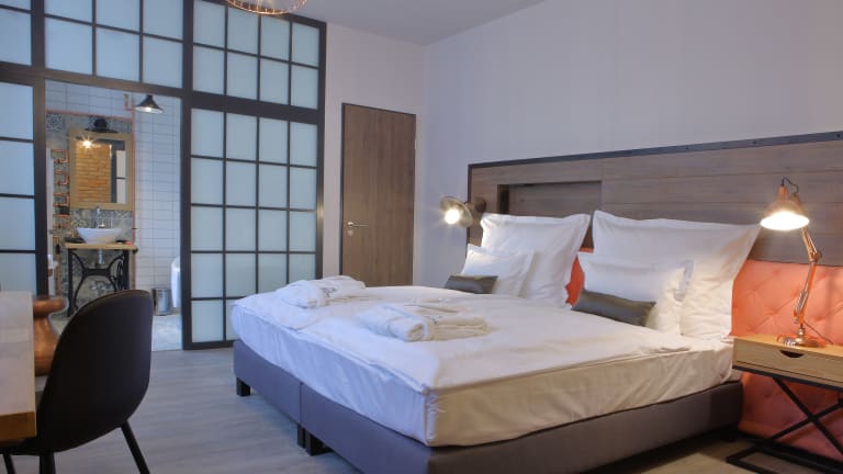 Die komfortablen Zimmer sind mit handgefertigten, industriellen oder Vintage-Möbeln eingerichtet und verfügen über eine Klimaanlage, ein eigenes Bad, eine Nespresso-Kaffeemaschine und einen Flachbild-Smart-TV. Zusätzlich sind ein Safe, eine Minibar und ein Schreibtisch vorhanden. Die Badezimmer sind mit kostenlosen Pflegeprodukten und Haartrockner ausgestattet. Es sind rollstuhlgerechte Zimmer buchbar.