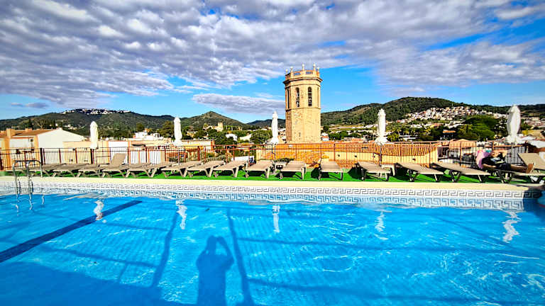 Verbringen Sie einen erholsamen Urlaub im familiengeführten Hotel Mercè im Zentrum von Pineda de Mar. Genießen Sie die mediterrane Atmosphäre und entspannen Sie am Pool auf dem Dach mit Panoramablick. Das Hotel bietet Ihnen komfortable Zimmer im mediterranen Stil sowie eine Snackbar am Pool und ein Buffetrestaurant mit Show-Küche. Freuen Sie sich auf ein tägliches Unterhaltungsprogramm und verschiedene Sporteinrichtungen. WLAN ist in allen Bereichen kostenlos verfügbar. Das Hotel liegt nur wenige Gehminuten vom Strand entfernt und bietet kostenlose Parkplätze in der Nähe.