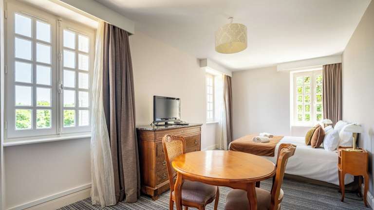 Die Zimmer im Hotel Mercure Correze La Seniorie sind klimatisiert und verfügen über ein Doppelbett, eine Minibar, eine Tee-/Kaffeemaschine sowie ein Direktwahltelefon und Sat-TV. Die Badezimmer sind mit einer Dusche und einer Badewanne ausgestattet und bieten Haartrockner sowie Telefon. Familien- und Nichtraucherzimmer sind ebenfalls verfügbar.
