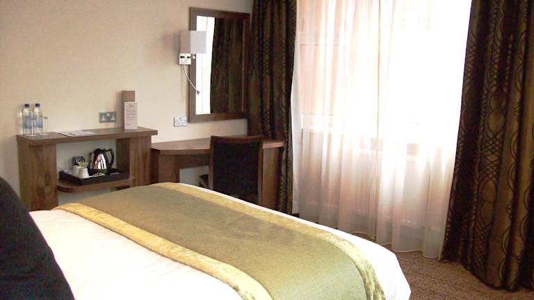 Die Zimmer sind mit einer Klimaanlage und Heizung ausgestattet und verfügen über Teppichboden, ein Doppelbett oder Kingsize-Bett sowie Zustellbetten auf Anfrage. Zur Ausstattung gehören ein Safe, eine Minibar, ein Schreibtisch, eine Tee-/Kaffeemaschine, ein Telefon mit Direktwahl, ein TV-Gerät mit Satelliten-/Kabelempfang, ein Radio, ein Wecker und kostenfreies Wifi. Die Badezimmer sind mit Dusche und Badewanne ausgestattet und bieten Haartrockner sowie Kosmetikartikel. Barrierefreie Zimmer sind ebenfalls verfügbar.