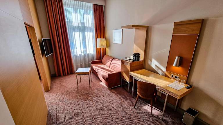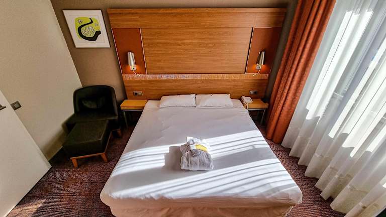 Die Zimmer sind klimatisiert und verfügen über eine Heizung, einen Safe sowie eine Minibar. Ein Minikühlschrank, eine Tee-/Kaffee-Station, ein Telefon, Sat-TV, Radio und kostenloses Wifi sind ebenfalls vorhanden. Das Badezimmer ist mit einer Dusche und Badewanne sowie einem Haartrockner ausgestattet. Es sind sowohl Nichtraucher- als auch Familienzimmer buchbar.
