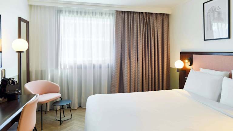 In den Zimmern gibt es eine Klimaanlage und Heizung. Diese bieten einen Balkon oder eine Terrasse mit Stadtblick und sind mit einem Doppelbett ausgestattet. Zusätzliche Annehmlichkeiten wie ein Safe, ein Schreibtisch, ein Wasserkocher für Tee und Kaffee, ein Bügelset und ein Haartrockner gewährleisten einen angenehmen Aufenthalt. WLAN steht gratis zur Verfügung. Es sind auch rollstuhlgerechte Zimmer mit barrierefreiem Bad verfügbar.