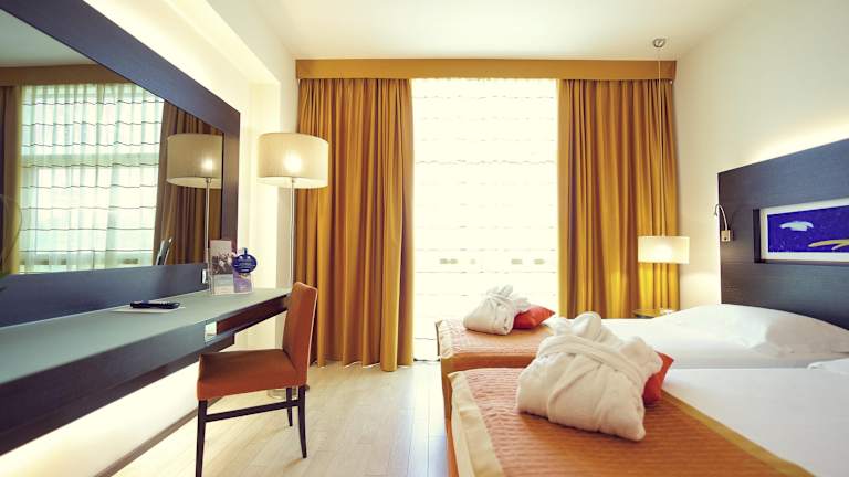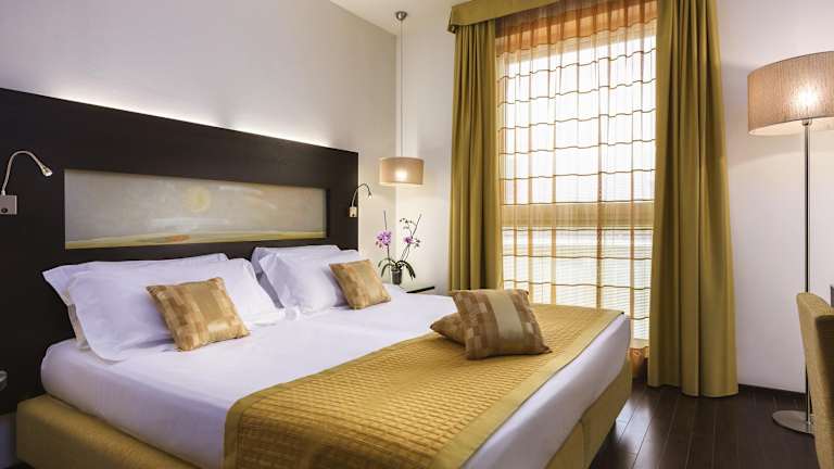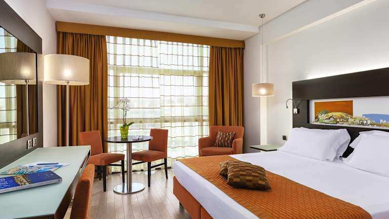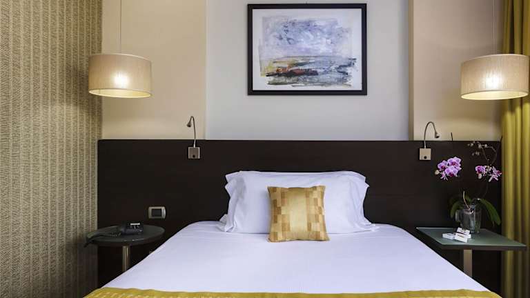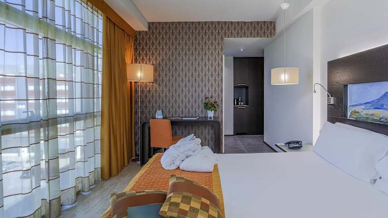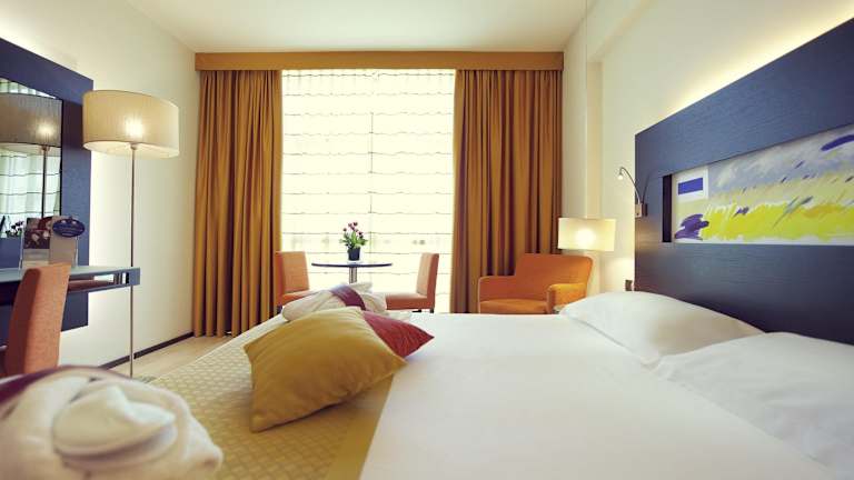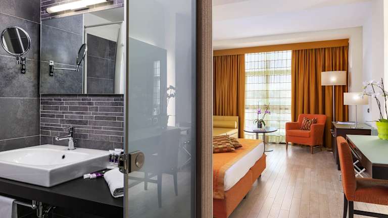 Die Zimmer bieten Bequemlichkeiten wie Klimaanlage, einen Balkon oder eine Terrasse, einen Safe, eine Minibar und einen Schreibtisch. Die Badezimmer sind mit Dusche, Badewanne und Bidet ausgestattet. Haartrockner und Toilettenartikel sind ebenfalls vorhanden. Einige Zimmer sind rollstuhlgerecht und verfügen über ein barrierefreies Badezimmer.