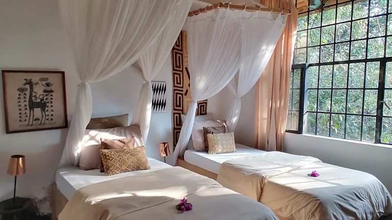 Die geräumigen Zimmer im Meru House sind im afrikanischen Stil eingerichtet und bieten einen herrlichen Blick auf den Garten. Jedes Zimmer verfügt über einen Sitzbereich, einen Schreibtisch und ein eigenes Badezimmer mit einem Haartrockner und kostenlosen Pflegeprodukten. Hier können Sie sich wie zu Hause fühlen und den Komfort und die Annehmlichkeiten genießen.