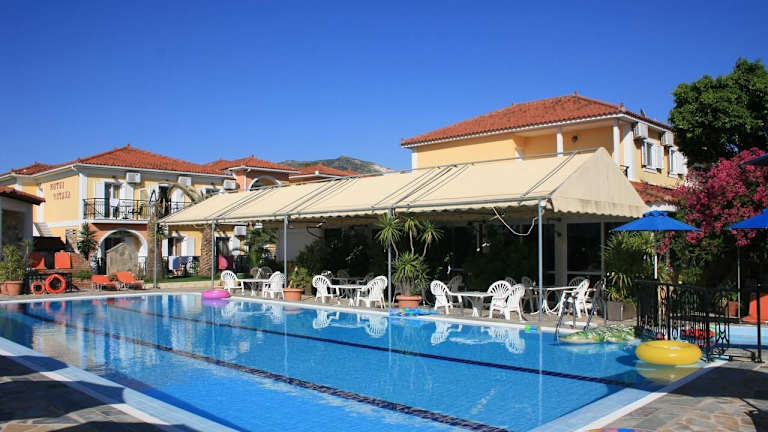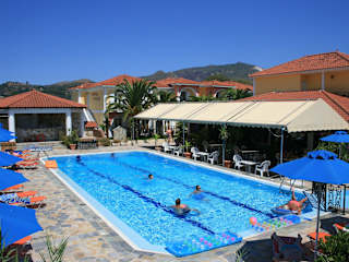 Das Hotel befindet sich auf Zakynthos in der Gegend Kalamaki, etwa 3 km südwestlich von Laganas und rund 5 km nördlich der Hauptstadt Zakynthos. Das Zentrum von Kalamaki liegt in Gehweite, etwa 300 m entfernt, und der Strand ist rund 500 m entfernt. Der internationale Flughafen Zakynthos ist in ungefähr 3 km erreichbar.