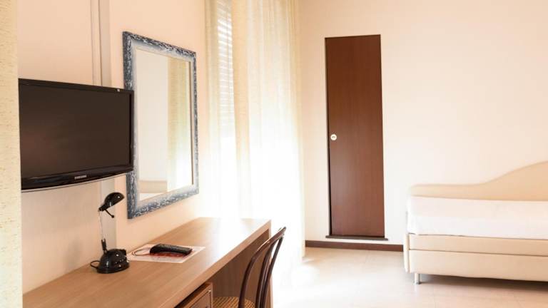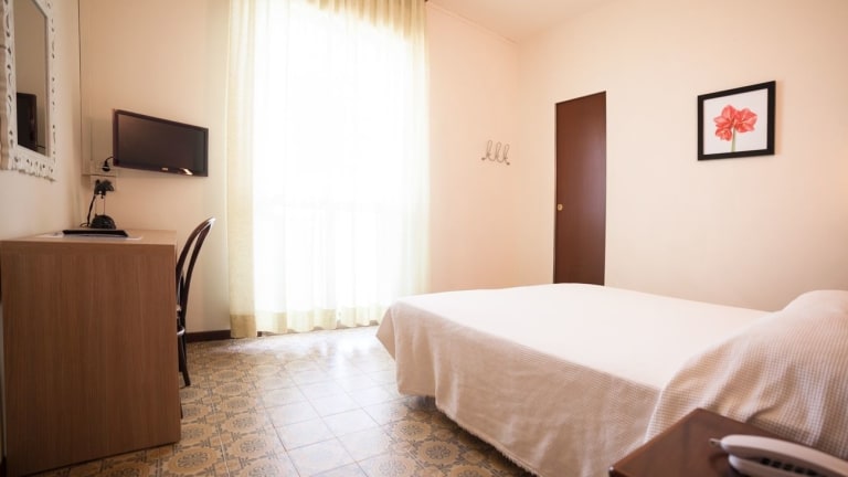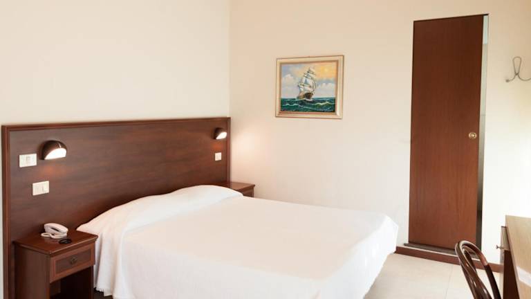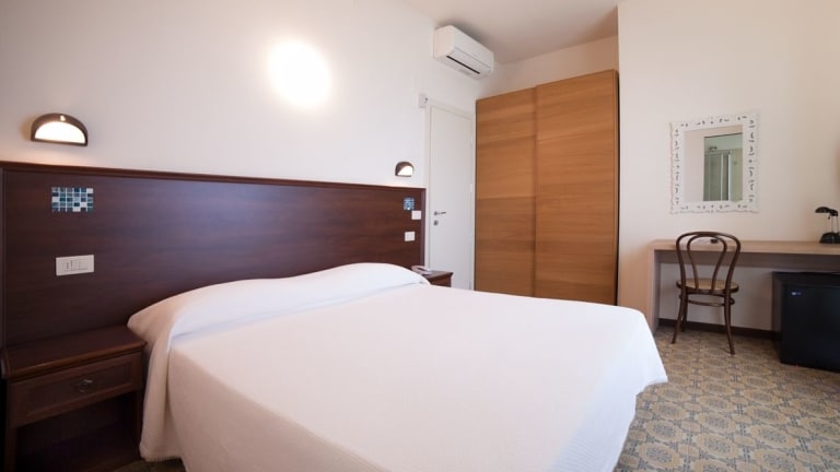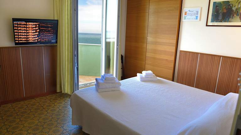 Die klimatisierten Zimmer verfügen über ein Doppelbett, einen Balkon oder eine Terrasse mit Meerblick, einen kleinen Kühlschrank, einen Safe, ein Telefon und einen Flachbild-TV. Im Badezimmer befindet sich eine Dusche sowie ein Haartrockner. Kinderbetten stehen auf Anfrage zur Verfügung. Das Hotel bietet sowohl Familien- als auch Nichtraucherzimmer an.