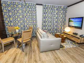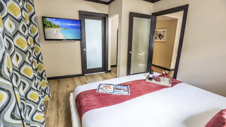 Die Zimmer sind klimatisiert und verfügen über moderne Ausstattung, darunter ein Doppelbett, Queensize- oder Kingsize-Bett, eine Minibar, ein Safe sowie eine Kochnische mit Kühlschrank und Mikrowelle. Badezimmer sind mit Dusche und Badewanne ausgestattet und bieten Haartrockner sowie Kosmetikartikel. Für Familien stehen spezielle Familienzimmer zur Verfügung.