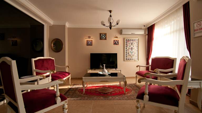Das Hotel Mevlana bietet eine freundliche Atmosphäre und umfasst 20 Zimmer. Die Einrichtung beinhaltet einen Garten, eine Gemeinschaftslounge sowie eine Sonnenterrasse zur Erholung im Freien. Zur weiteren Ausstattung gehören ein Aufzug, eine Gepäckaufbewahrung, ein Safe und eine Wechselstube. WLAN steht kostenlos zur Verfügung. Das freundliche Personal an der Rezeption ist rund um die Uhr ansprechbar und unterstützt Gäste bei allen Fragen. Für Anreisen mit dem Auto gibt es die Möglichkeit, die Fahrzeuge in einer Garage oder auf dem Parkplatz abzustellen. Das Hotel ist mit behindertengerechten Annehmlichkeiten ausgestattet.