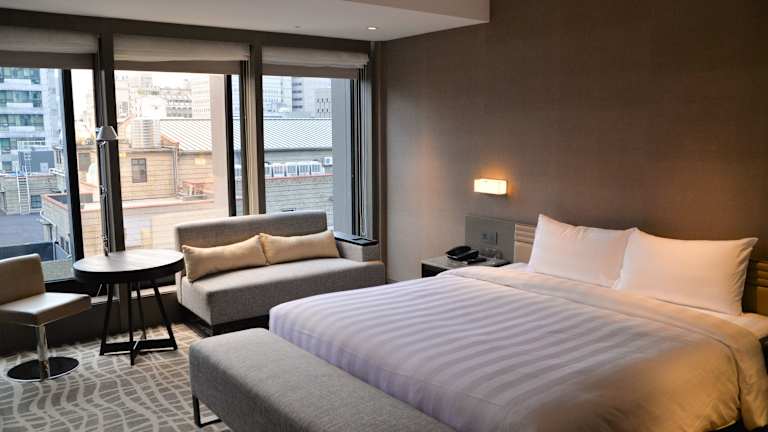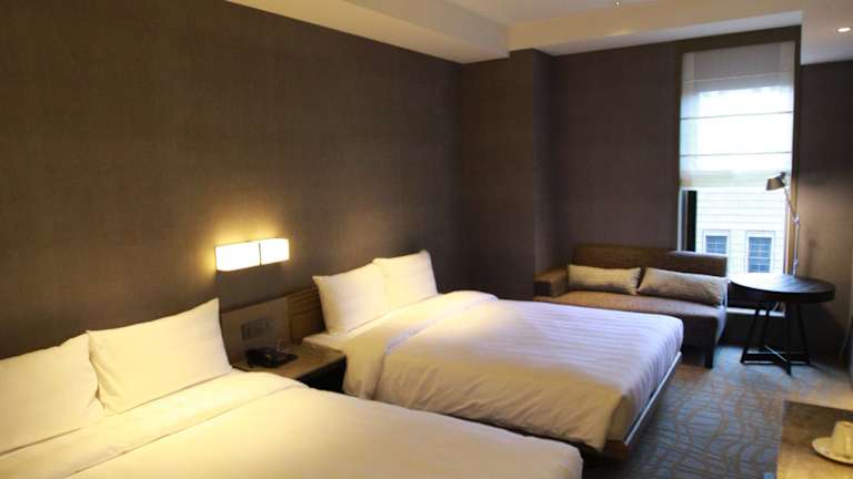 Die klimatisierten Zimmer sind modern eingerichtet und bieten ein angenehmes Raumklima. Jedes Zimmer verfügt über einen 50-Zoll-Flachbild-TV, einen Mini-Kühlschrank, einen Wasserkocher sowie Teebeutel und Hausschuhe. Ein Safe und ein Schreibtisch sind ebenfalls vorhanden. Die Badezimmer sind mit einer Badewanne oder Dusche ausgestattet, und Kosmetikartikel sowie Handtücher werden bereitgestellt. Einige Zimmer bieten keine Fenster oder Aussicht. Das Hotel bietet zudem rollstuhlgerechte Zimmer mit barrierefreien Bädern.