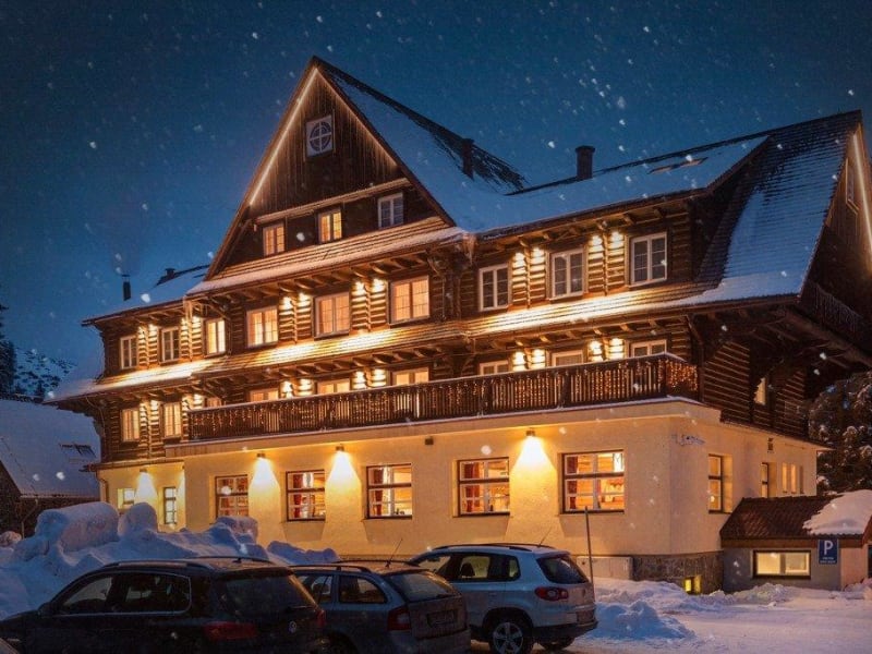 Das Hotel Mikulášska Chata in der Niederen Tatra bietet Ihnen einen modernen und komfortablen Aufenthalt in einem restaurierten Cottage. Genießen Sie die wunderschöne Umgebung beim Skifahren oder Wandern und entspannen Sie sich im Wellnessbereich mit Sauna, Whirlpool und anderen Annehmlichkeiten. Das Hotelrestaurant verwöhnt Sie mit slowakischer Küche und internationalen Gerichten.