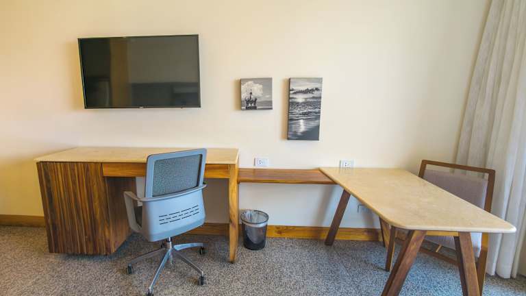 Die Zimmer bieten eine angenehme Klimaanlage und sind mit einem Balkon oder einer Terrasse ausgestattet, von wo aus die Gäste einen herrlichen Blick auf das Meer geniessen können. Jedes Zimmer ist mit einem Doppelbett, einem Queensize-Bett oder einem Kingsize-Bett ausgestattet, zudem können Zustellbetten angefordert werden. Zur weiteren Ausstattung gehören ein Safe, eine Minibar, ein Telefon, ein TV-Gerät und kostenloses Wifi. Im Badezimmer finden die Gäste eine Dusche, einen Haartrockner und verschiedene Kosmetikartikel vor, sowie eine Auswahl an Handtüchern.