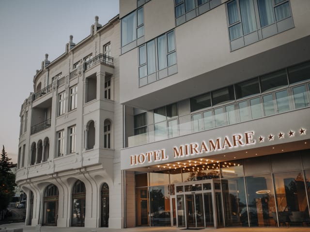 Grand Hotel Miramare Im Zentrum von Crikvenica, direkt neben der Strandpromenade und dem weitläufigen Sandstrand, befindet sich das im Jahr 1906 erbaute und im Jahr 2020 komplett renovierte Grand Hotel Miramare, um in seinem neuen und modernen Antlitz die Tradition des Hotelgewerbes und der Gastronomie für die anspruchsvollsten Gäste fortzusetzen, unter Berücksichtigung der übernommenen Werte die viele Generationen als Erbe hinterlassen haben. Das Grand Hotel Miramare verfügt über 130 eleganter Zimmer und 6 Luxus-Suiten, die den anspruchsvollsten Gästen gerecht werden. Außer eleganter und moderner Möbel höchster Qualität zeichnen sie Komfort, Luftigkeit und eine beruhigende Kombination aus hellen und blauen Details aus. Sorgfältig ausgewählte natürliche Materialien und angenehme Farben schaffen eine einzigartige entspannende Atmosphäre. Alle Unterkünfte sind klimatisiert und verfügen über: Flachbild-Sat-TV, Minibar, Safe und Telefon. Das moderne und komfortable Badezimmer mit „Walk in“ Dusche bietet kostenlose Pflegeprodukte und einen Haartrockner. Um Ihren Aufenthalt noch komfortabler zu gestalten, stehen Bademäntel und Hausschuhe zur Verfügung. Kostenloses WLAN ist in der gesamten Unterkunft verfügbar. Für umfassenden Komfort stehen Ihnen auch eine Hotelgarage und Parkplätze im Freien zur Verfügung. Neben der Unterbringung in neu eingerichteten Zimmern und Suiten bietet das Hotel Miramare seinen Gästen die Möglichkeit, viele zusätzliche Einrichtungen wie einen Innenpool mit Meerblick, ein modernes Wellnesscenter mit drei Arten von Saunen, warme Bank, Ruhebereich und Fitness, sowie ein Top-Restaurant mit reichhaltigen Angeboten sowohl lokaler als auch internationaler Spezialitäten, sowie einer Weinkarte mit den besten Weinen Kroatiens. Neben dem Restaurant befindet sich eine Lounge & Cigar Bar mit Terrasse von der Ihnen ein bezaubernder Blick auf das offene Meer geboten wird, und Sie sich Abends bei einem Glas Wein oder einem erfrischenden Cocktail von magischen Sonnenuntergängen verführen lassen können. Über Crikvenica Die Entwicklung des Gesundheitstourismus in dieser kleinen Küstenstadt begann intensiv im Jahr 1888 unter der Schirmherrschaft der österreichisch-ungarischen Monarchie mit dem Bau des ersten Holzstrandes und bald darauf noch zweier Hotels, von denen eines das Miramare ist. Mit dem Bau der Binnenbahn und der Einführung der Dampfschifflinie nach Rijeka, aufgrund des angenehmen mediterranen Klimas und der fleißigen Gastgeber, wurde Crikvenica bald unter den Aristokraten als ideales Ziel für Erholung und Rehabilitation anerkannt, viele entschieden sich sogar hier zu Wohnen und zu Leben. Heute ist Crikvenica ein bekanntes Sommerziel mit guten Verkehrsanbindungen, angenehmen, milden mediterranem Klima und kristallklarem Meer. Zahlreiche Kiesel- und Sandstrände erstrecken sich entlang der gesamten Küste und sind durch lange Promenaden verbunden, die sich ideal für lange romantische Spaziergänge eignen. Crikvenica bietet jedoch viel mehr als nur den Genuß von Sonne und Meer - es gibt viele Kultur-, Sport- und Unterhaltungsmöglichkeiten. Die ideale Lage macht es zu einem perfekten Ausgangspunkt für Tagesausflüge, bei denen die Gäste alle Schönheiten erleben können, die die Kvarnerbucht zu bieten hat. Wer Spaß haben möchte, kann sich eine Nacht gönnen und den Sonnenaufgang in einer der Bars des berühmten Sandstrandes begrüßen, während Romantiker die berühmte 8 km lange Liebesstraße entdecken und in Begleitung eines geliebten Menschen Emotionen wecken können. Unterwegs lernen sie zahlreiche kulturelle und historische Sehenswürdigkeiten kennen, mit einem magischen Blick auf Crikvenica und seine benachbarten Ortschaften, wie das Badanj-Hügelfort, den Aussichtspunkt und Kavrans Felsen. Aufgrund seiner Lage und Allem was es bietet ist Crikvenica ein ideales Ziel für Familien, aber auch für Paare, die Ruhe und Entspannung suchen, sowie für diejenigen, die Spaß haben möchten. Auch für ältere Generationen ist gesorgt, die saubere Meeresluft, die Aerosole und die langen Spaziergänge am Meer, umgeben von Düften mediterraner Pflanzen tragen der Gesundheit und Entspannung bei.