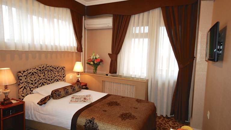Die Zimmer im Hotel Mithat sind mit einem Kleiderschrank ausgestattet und verfügen über ein eigenes Badezimmer mit Dusche und kostenlosen Pflegeprodukten. Einen Flachbild-TV sowie Klimaanlage sind ebenfalls vorhanden, wobei einige Zimmer zusätzlich einen Balkon bieten.
