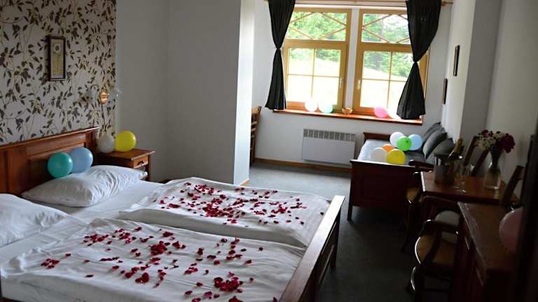 Die Unterkünfte im Hotel Modrava sind mit einem Flachbild-TV sowie einem Bad mit Dusche oder Badewanne ausgestattet. Einige Zimmer verfügen zudem über einen Sitzbereich. Familienzimmer sind ebenfalls vorhanden.