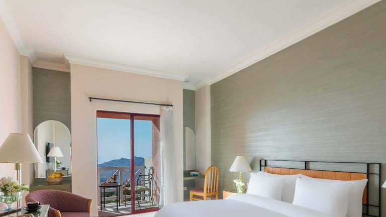 Die Zimmer sind mit Klimaanlage, Heizung und Ventilator ausgestattet und die Gäste können den Bergblick von Balkon oder Terrasse geniessen. Zur Ausstattung gehören ein Doppelbett oder ein Kingsize-Bett, ein Safe, eine Minibar, ein Kühlschrank, eine Mikrowelle und eine Tee-/Kaffeemaschine. Zudem verfügen sie über moderne Unterhaltungsgeräte wie einen TV und WiFi ohne Gebühr. Die Badezimmer sind mit Dusche, Badewanne und Bidet ausgestattet, darüber hinaus stehen Haartrockner und Kosmetikartikel zur Verfügung.