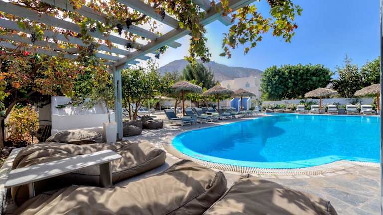 Gäste können in der Umgebung von Kamari verschiedene Aktivitäten wie Wandern, Schnorcheln und Radfahren nachgehen. Des Weiteren stehen Windsurfen, Kanusport und Tauchen gegen Gebühr zur Verfügung. Ein Außenpool ist vorhanden, der saisonal geöffnet ist.