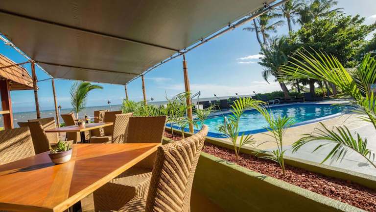 Das Hotel verfügt über ein Nichtraucherrestaurant namens Hiro's Ohana Grill, das täglich von 11:00 bis 21:00 Uhr geöffnet ist und sowohl leichte Snacks als auch Abendessen anbietet. Ein reichhaltiges Frühstück wird täglich serviert.