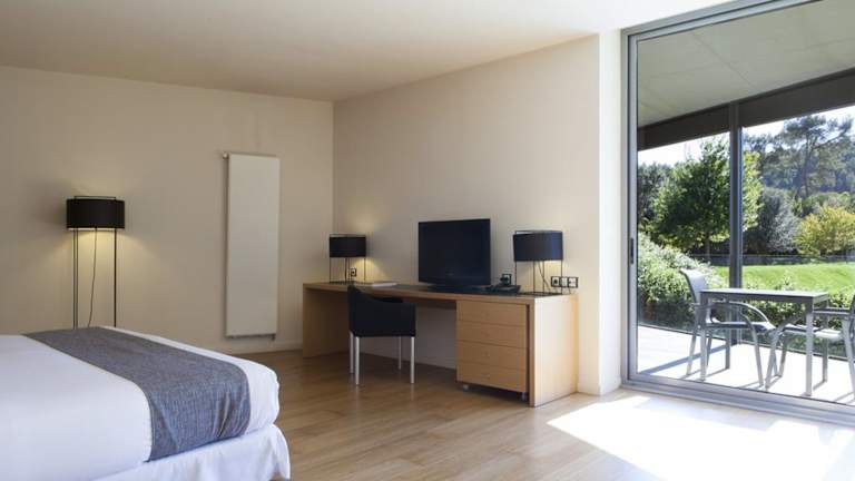 Die klimatisierten Zimmer sind mit einer eigenen Terrasse ausgestattet, bieten Aussicht auf das Kloster und den Naturpark Sant Llorenç del Munt i l‘Obac. Sie verfügen über ein eigenes Bad mit Badewanne und Dusche, Heizung, einen Flachbild-TV, eine Minibar sowie einen Safe. Zustellbetten sind auf Anfrage verfügbar.