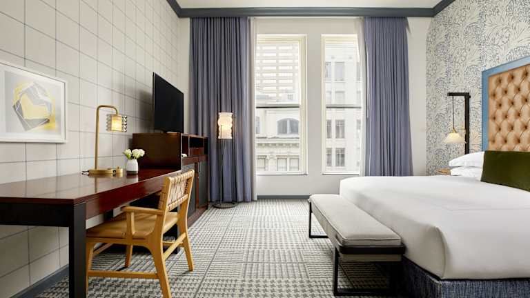 Jedes der 189 Zimmer im Kimpton Hotel Monaco Denver ist stilvoll eingerichtet und verfügt über eine moderne Ausstattung. Zu den Annehmlichkeiten gehören ein 50-Zoll-Flachbildfernseher, luxuriöse Bademäntel und hochwertige Pflegeprodukte.