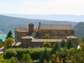 Im historischen Kloster Leyre erwartet Sie das Hotel Monasterio de Leyre in idyllischer Lage, nur 35 Fahrminuten von Pamplona entfernt. Die einfachen, aber gemütlichen Zimmer bieten einen herrlichen Blick auf die Berge und verfügen über Zentralheizung sowie kostenloses WLAN. Im Restaurant können Sie sich mit moderner und traditioneller Küche verwöhnen lassen. Während Ihres Aufenthalts haben Sie die Möglichkeit, das beeindruckende Kloster aus dem 9. Jahrhundert zu besichtigen und die wunderschöne Umgebung der Sierra de Leyre mit ihren Wanderwegen zu erkunden. Der Yesa-Stausee ist nur 7 km entfernt und auch die spanischen Pyrenäen sowie die französische Grenze sind gut erreichbar.