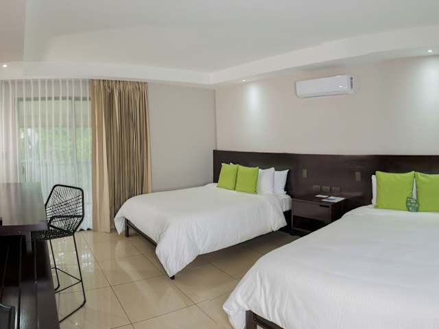 Die Zimmer sind ausgestattet mit Klimaanlage, Balkon oder Terrasse sowie einem Badezimmer mit Dusche, Badewanne und Whirlwanne. Weiterhin verfügen die Zimmer über ein Doppelbett oder Sofabett, einen Safe, eine Minibar und einen Schreibtisch. Für zusätzliche Bequemlichkeit sorgen Telefon, TV-Gerät und WiFi. Familien- und Nichtraucherzimmer sind ebenfalls verfügbar.