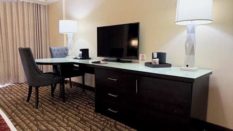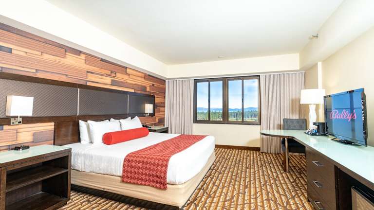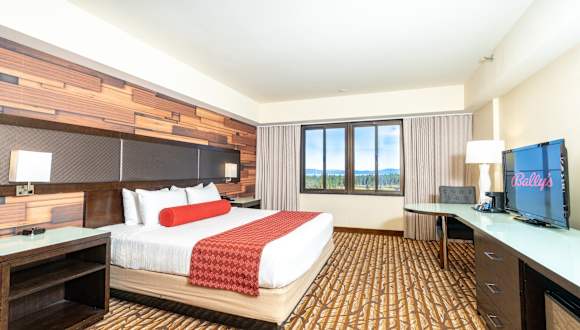 Die 437 Zimmer im Bally's Lake Tahoe Casino Resort sind komfortabel eingerichtet und verfügen über Annehmlichkeiten wie Klimaanlage, Kabel-TV und ein eigenes Badezimmer mit Dusche oder Badewanne. Einige Suiten bieten zudem einen Blick auf den See und die Berge sowie einen Whirlpool für zwei Personen.