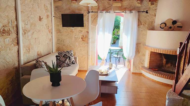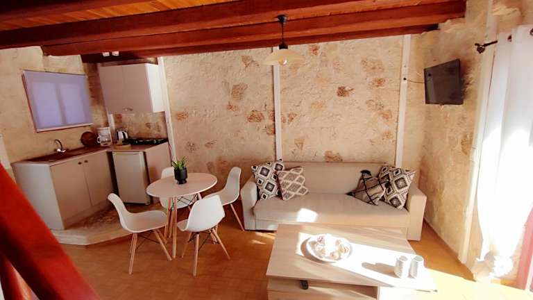 Die Zimmer in der Unterkunft Spasmata Village Stone Maisonette sind modern ausgestattet und beinhalten Annehmlichkeiten wie eine Klimaanlage, kostenfreies Wifi, einen Sitzbereich sowie einen Flachbild-TV. Eine voll ausgestattete Küche mit Kühlschrank, Herdplatte, Toaster, Kaffeemaschine und Wasserkocher steht zur Verfügung. Das eigene Badezimmer ist mit einer Dusche und kostenlosen Pflegeprodukten ausgestattet. Zudem bietet die Unterkunft eine Terrasse mit Meerblick.